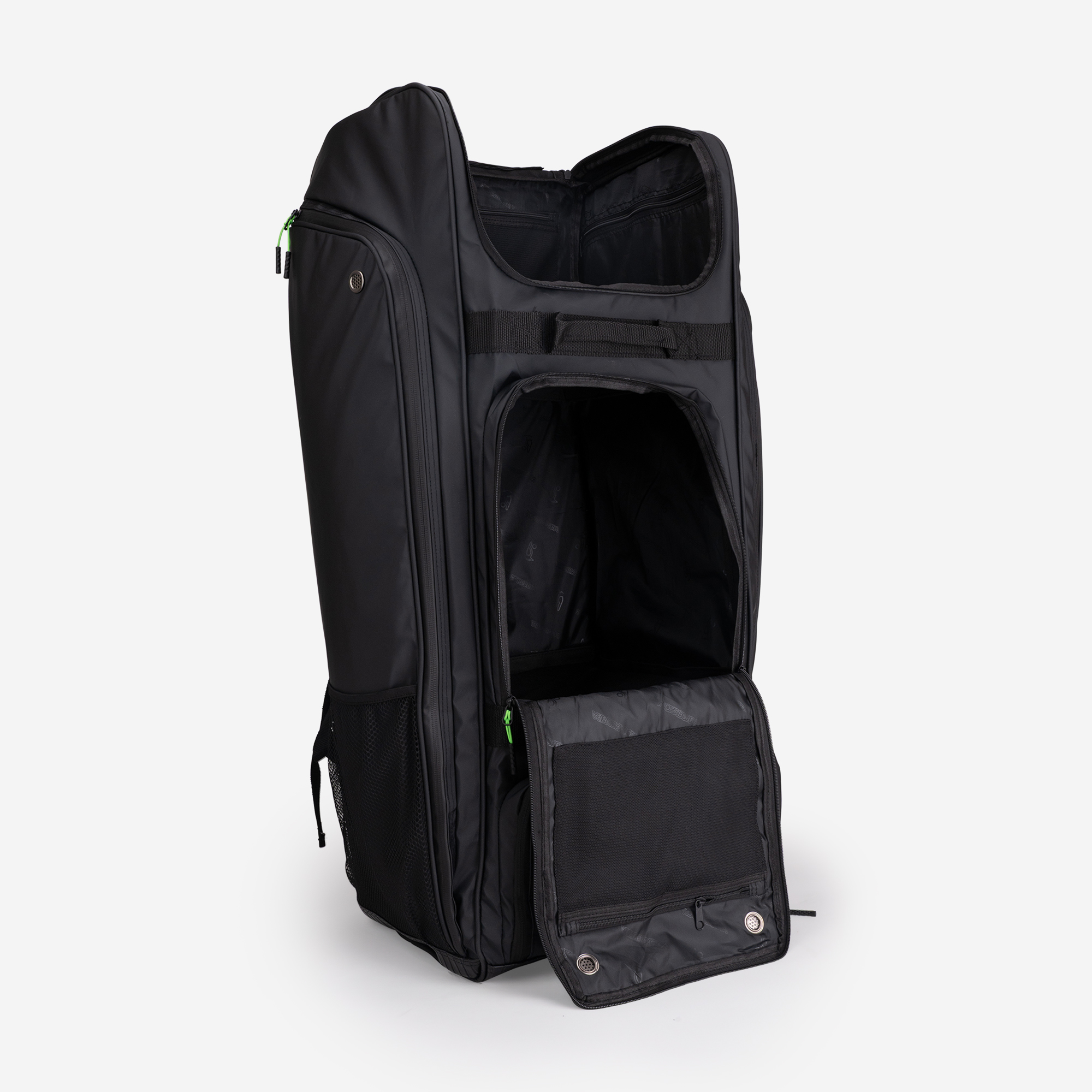 - Ventilated Pockets: Batting pad pockets (x2), footwear and clothing compartments.